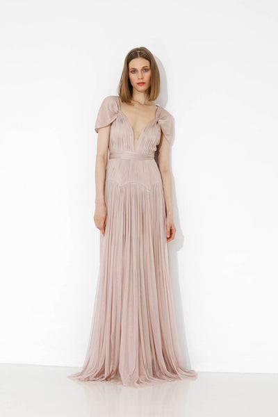 Rochie realizată pe comandă în atelierul Natalia Vasiliev. Pentru programarea unei probe, folosește butonul „Programează o probă”.