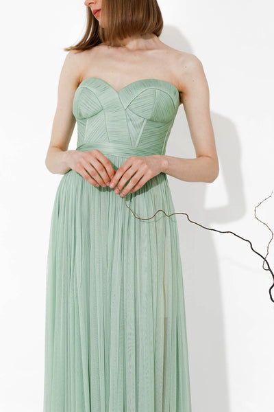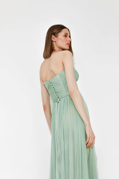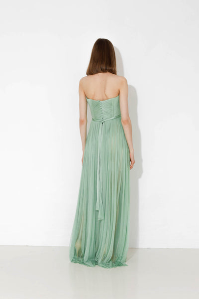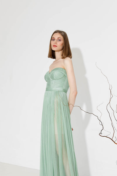Rochie realizată pe comandă în atelierul Natalia Vasiliev. Pentru programarea unei probe, folosește butonul „Programează o probă”.