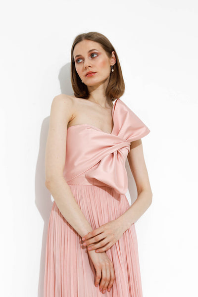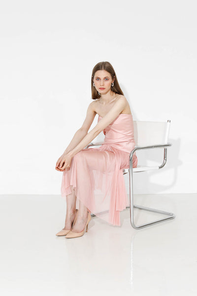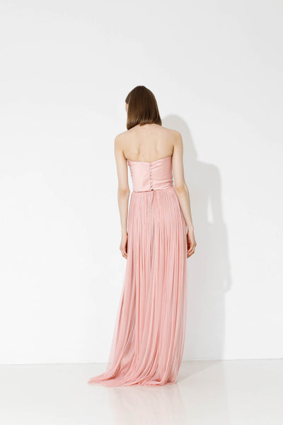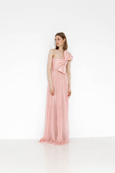 Rochie realizată pe comandă în atelierul Natalia Vasiliev. Pentru programarea unei probe, folosește butonul „Programează o probă”.