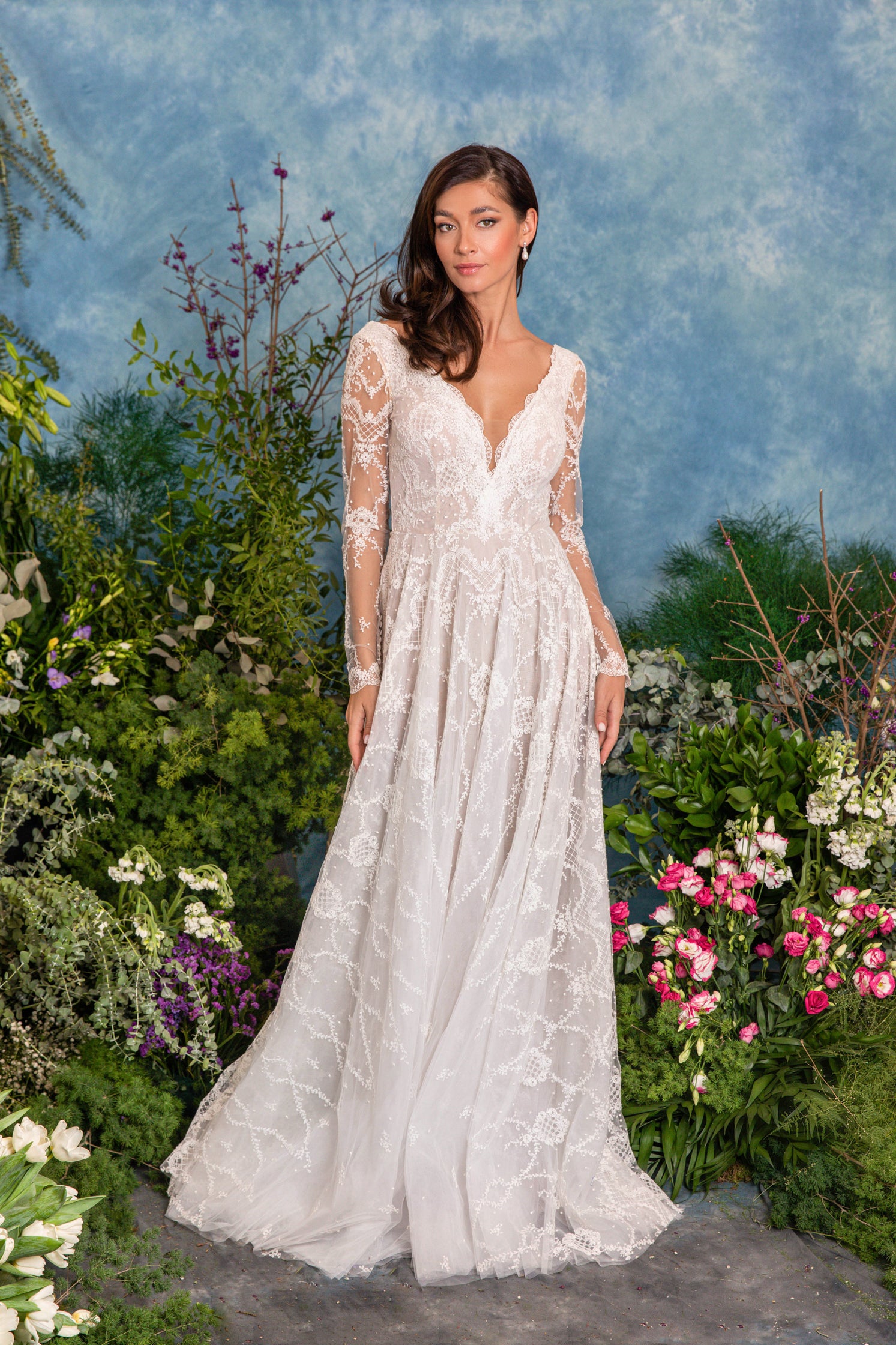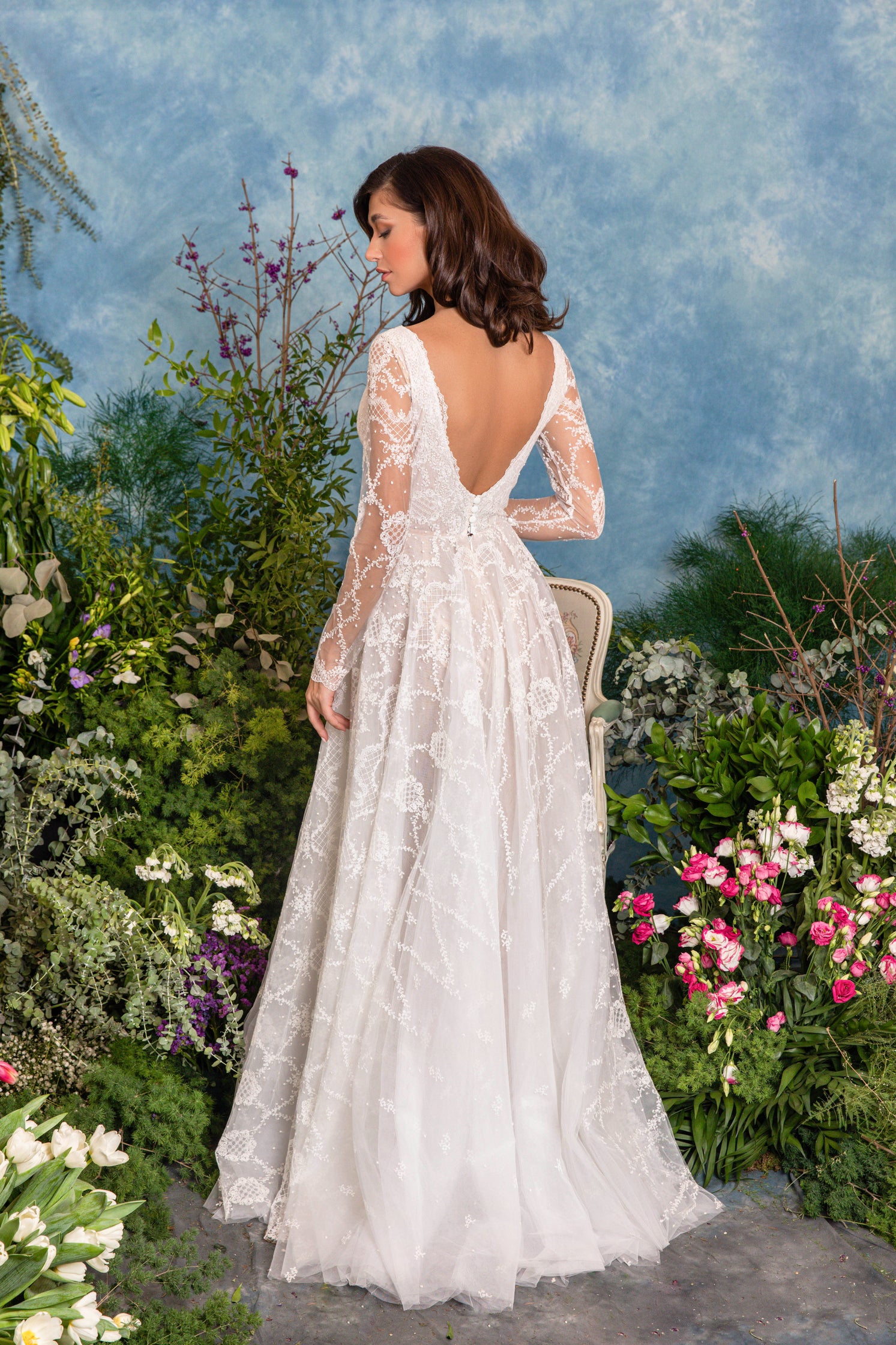 Rochie de mireasă custom made, realizată pe comandă în atelierul Natalia Vasiliev. Pentru programarea unei probe, folosește butonul „Programează o probă”.