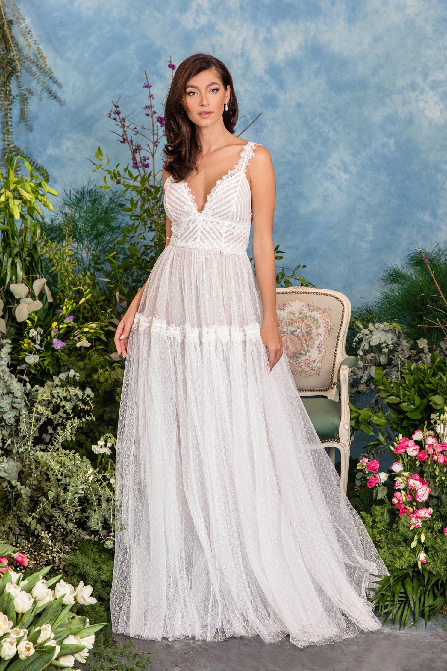Rochie de mireasă custom made, realizată pe comandă în atelierul Natalia Vasiliev. Pentru programarea unei probe, folosește butonul „Programează o probă”.