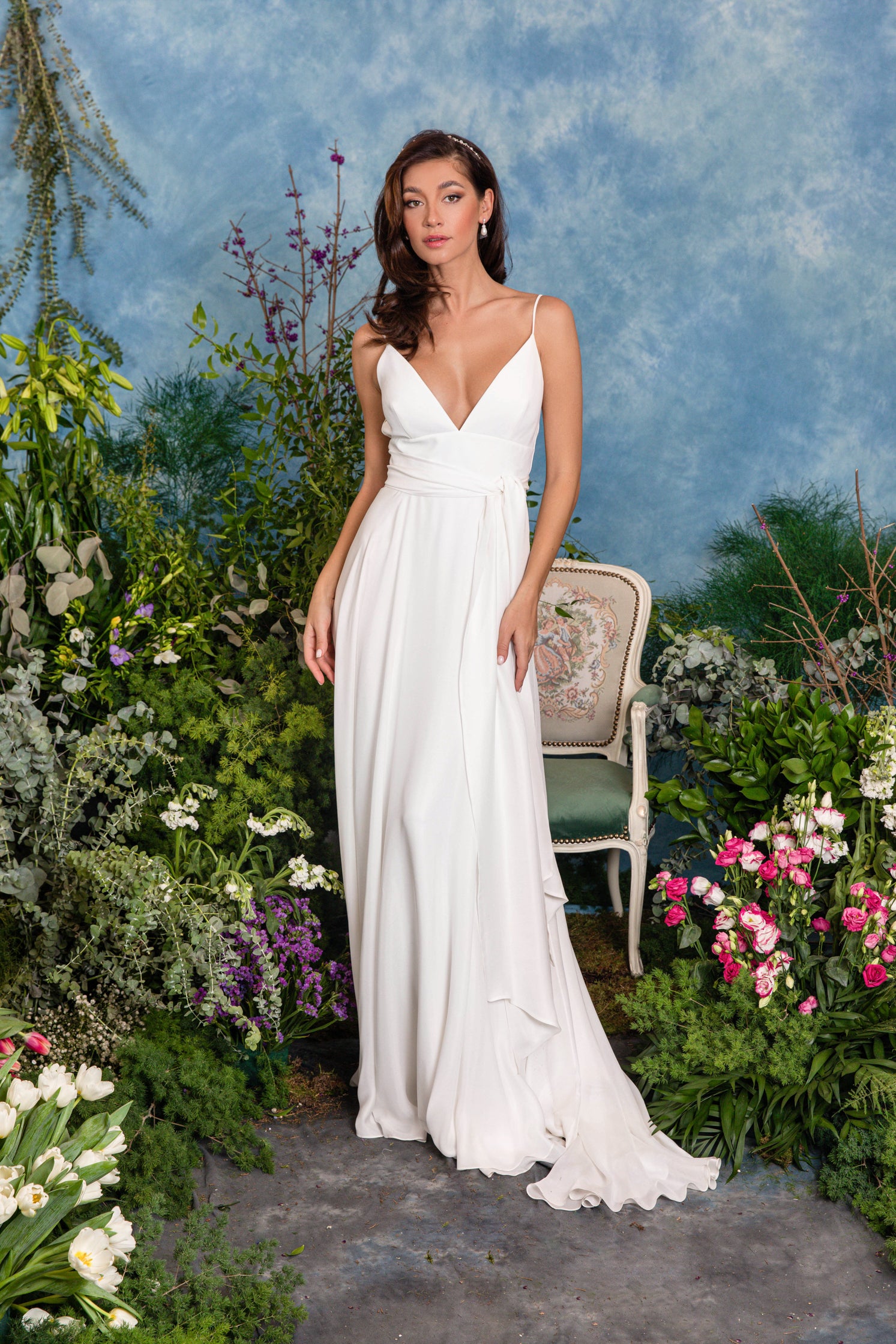 Rochie de mireasă custom made, realizată pe comandă în atelierul Natalia Vasiliev. Pentru programarea unei probe, folosește butonul „Programează o probă”.