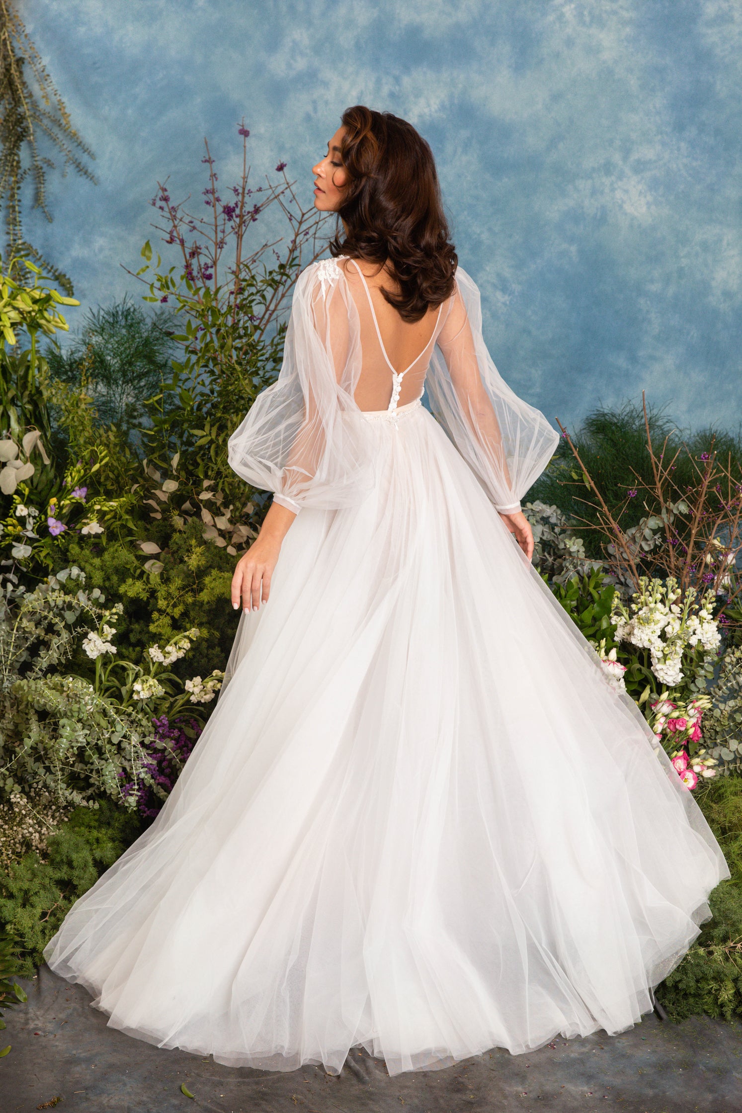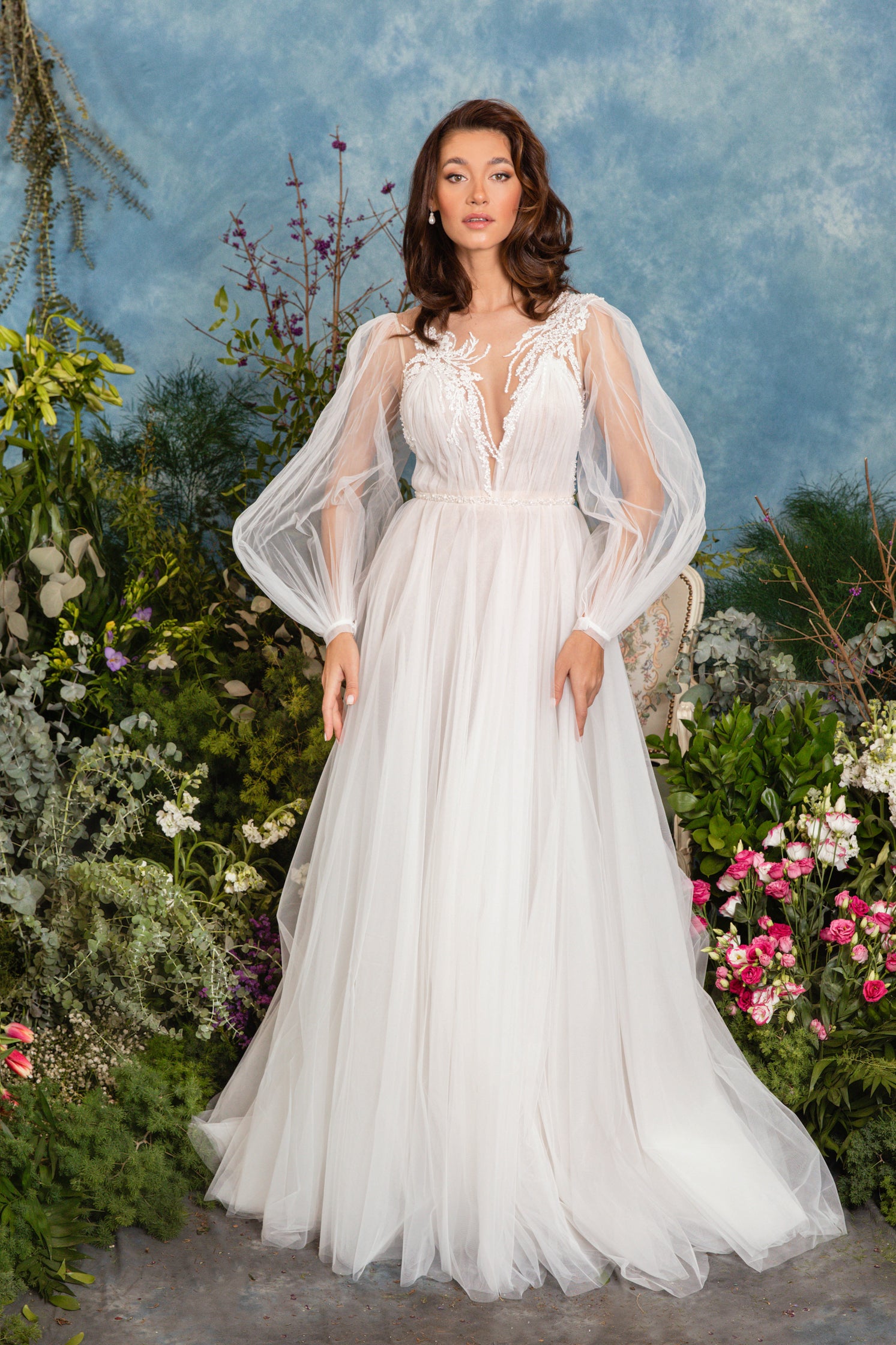 Rochie de mireasă custom made, realizată pe comandă în atelierul Natalia Vasiliev. Pentru programarea unei probe, folosește butonul „Programează o probă”.