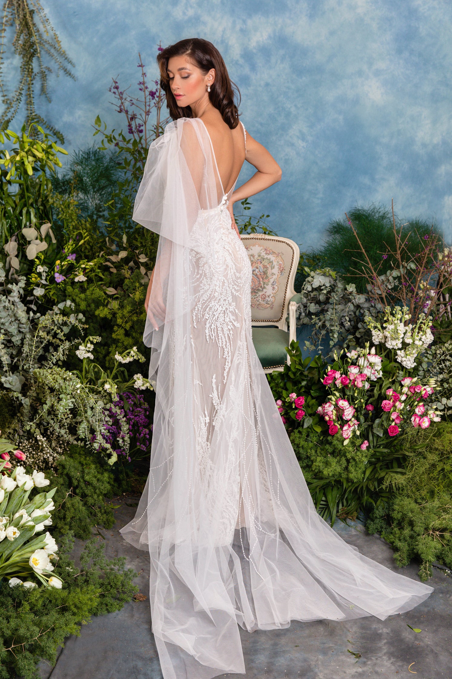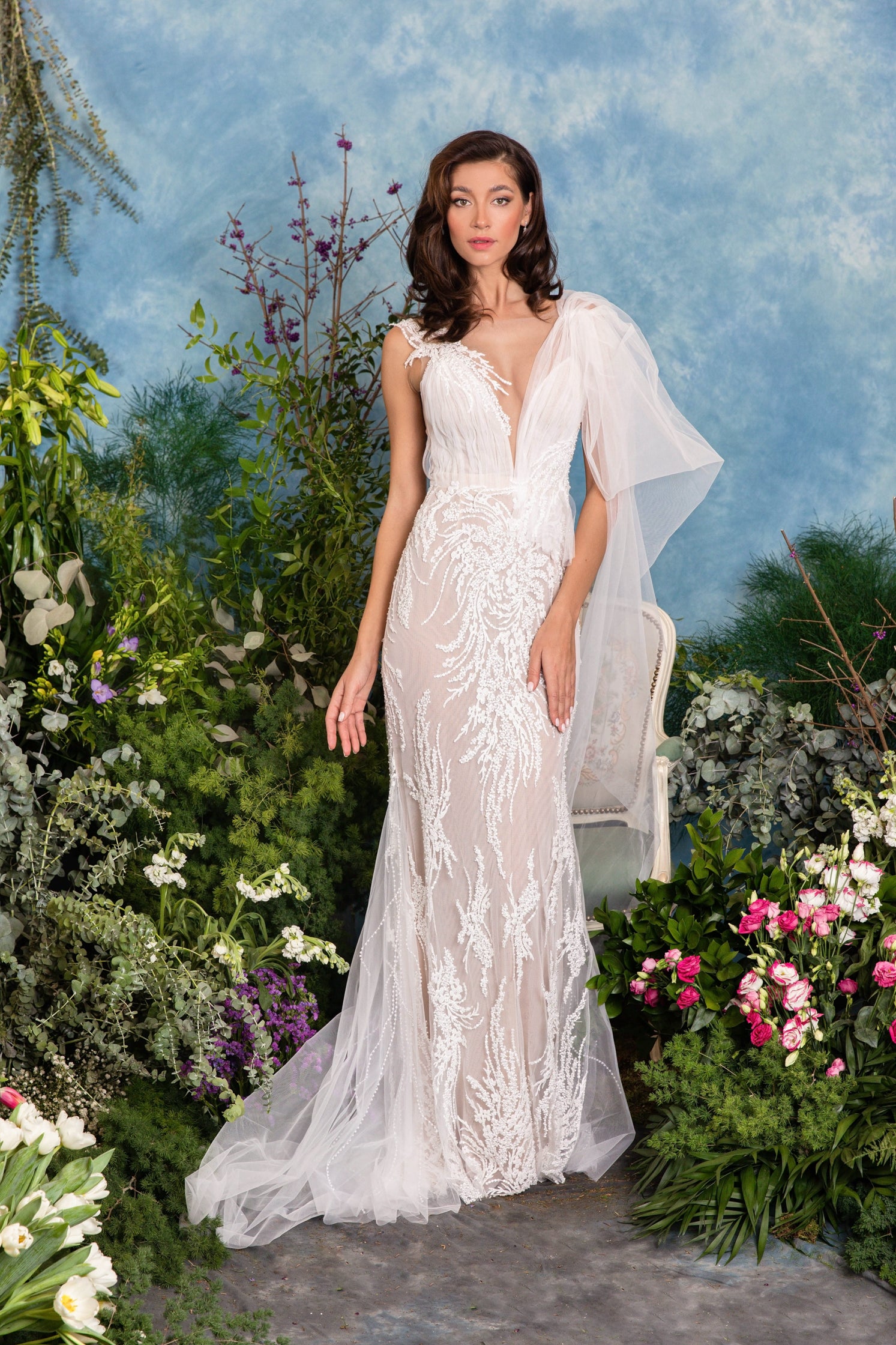 Rochie de mireasă custom made, realizată pe comandă în atelierul Natalia Vasiliev. Pentru programarea unei probe, folosește butonul „Programează o probă”.