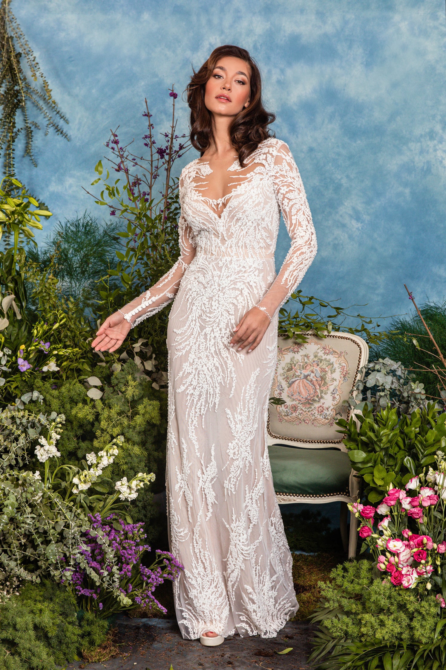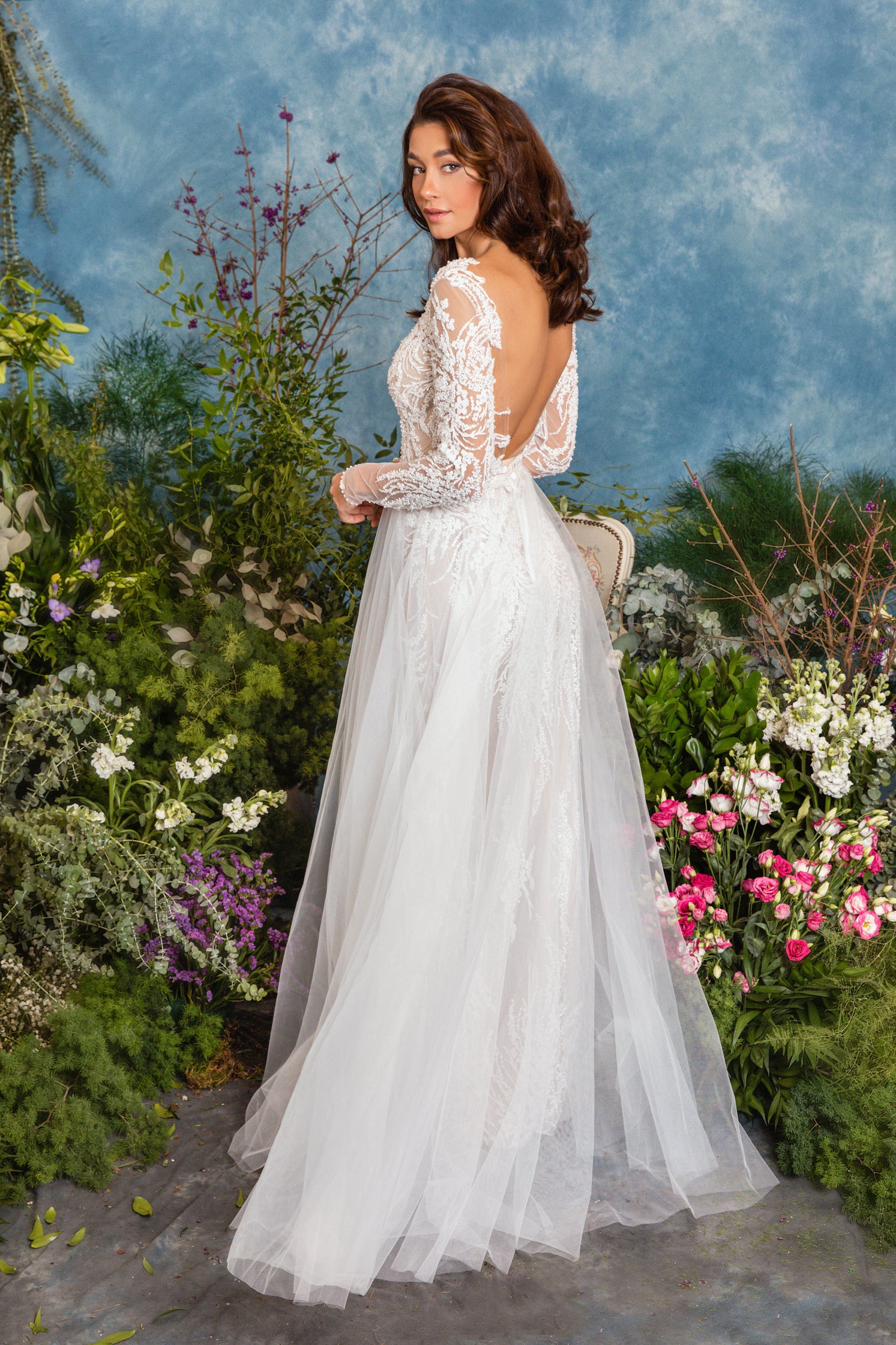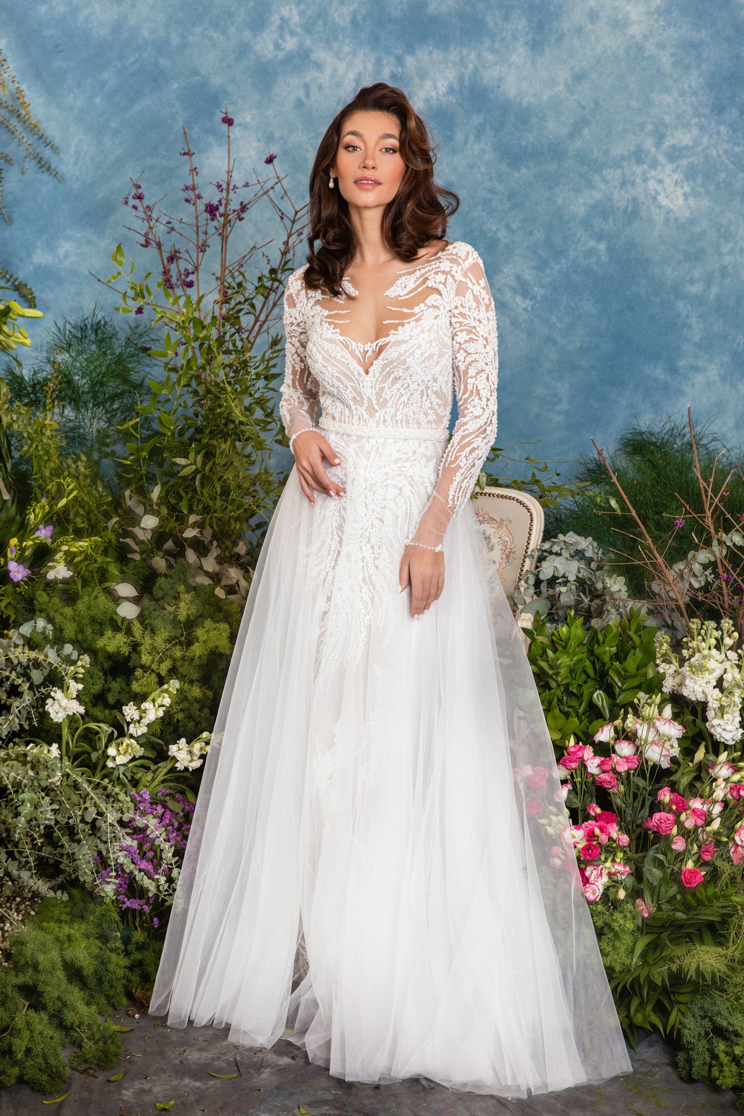 Rochie de mireasă custom made, realizată pe comandă în atelierul Natalia Vasiliev. Pentru programarea unei probe, folosește butonul „Programează o probă”.