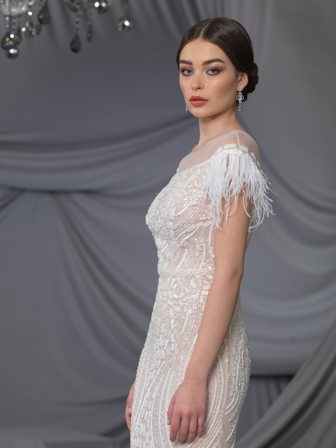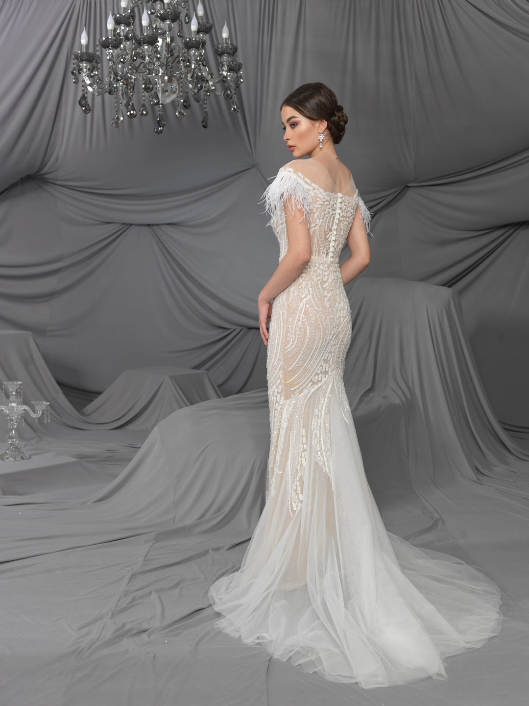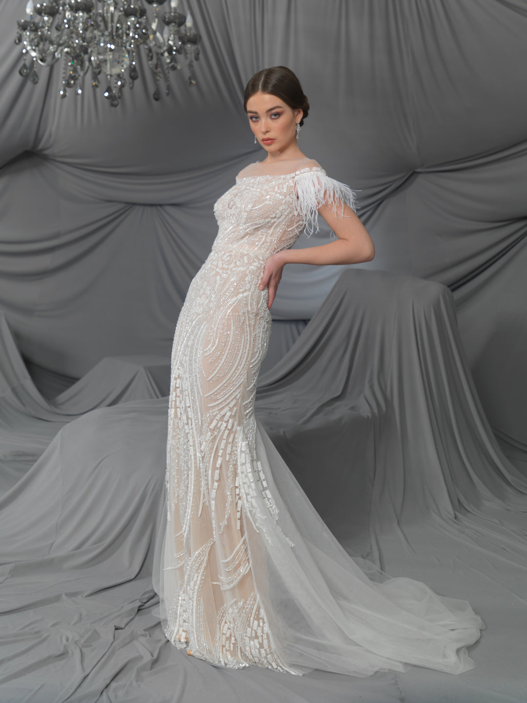 Rochie de mireasă custom made, realizată pe comandă în atelierul Natalia Vasiliev. Pentru programarea unei probe, folosește butonul „Programează o probă”.