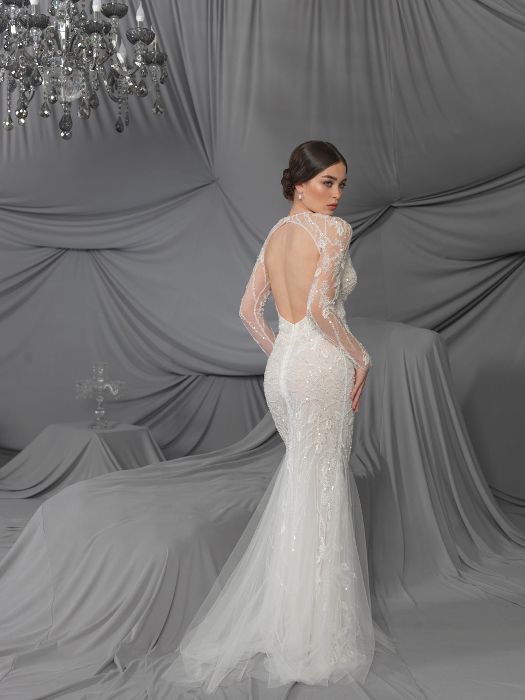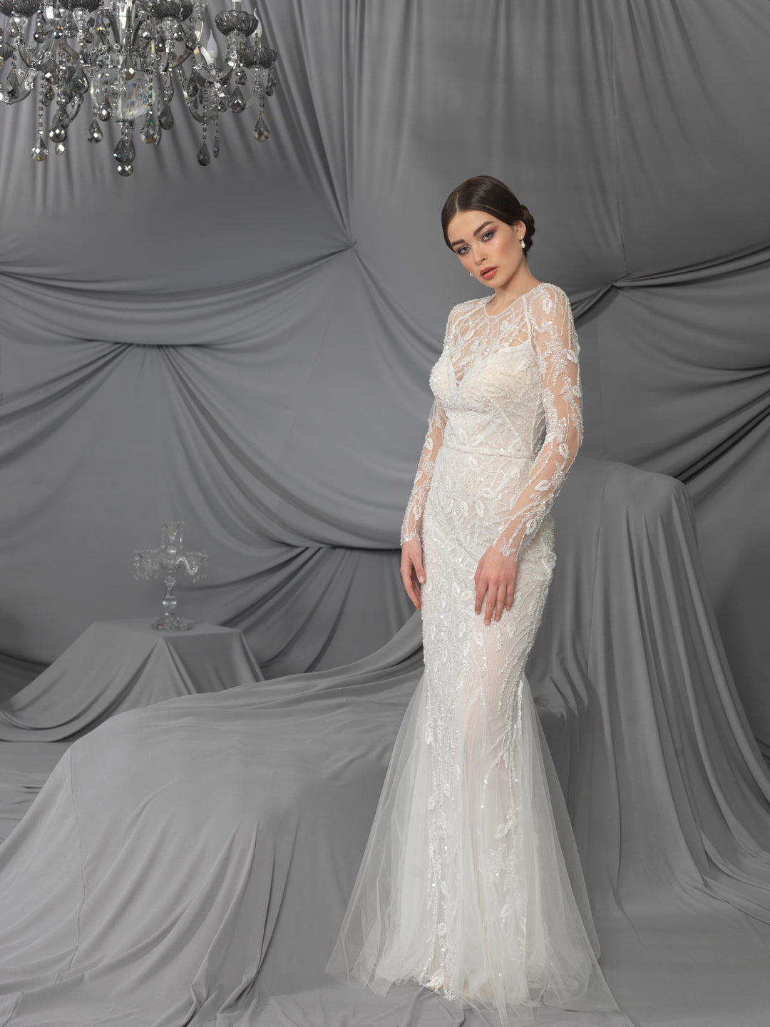 Rochie de mireasă custom made, realizată pe comandă în atelierul Natalia Vasiliev. Pentru programarea unei probe, folosește butonul „Programează o probă”.