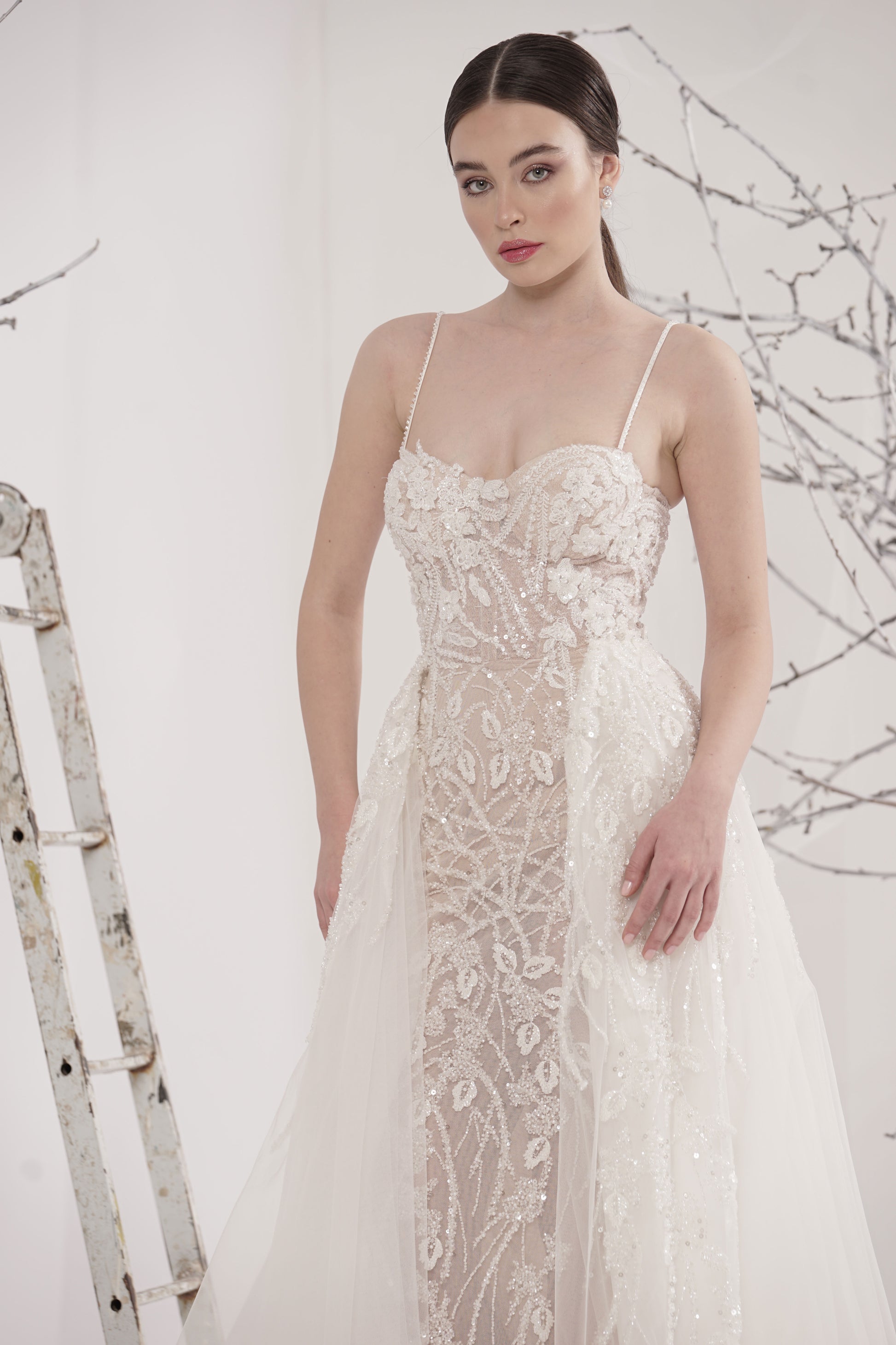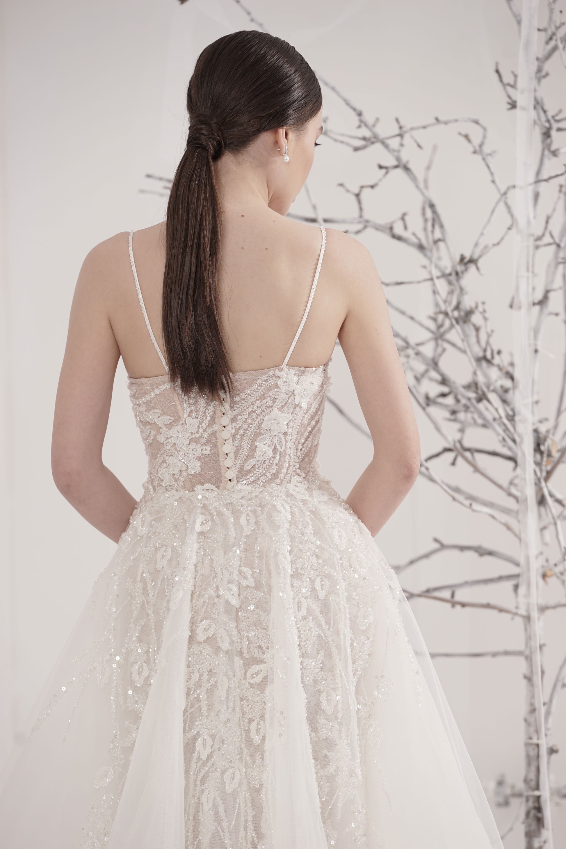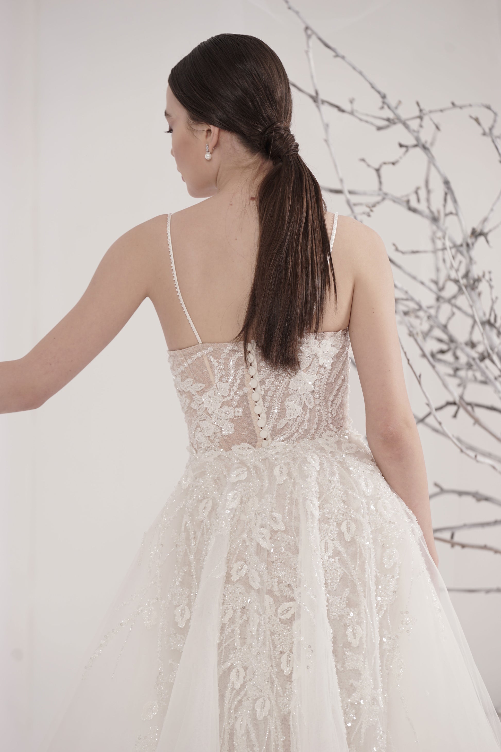 Rochie de mireasă custom made, realizată pe comandă în atelierul Natalia Vasiliev. Pentru programarea unei probe, folosește butonul „Programează o probă”.