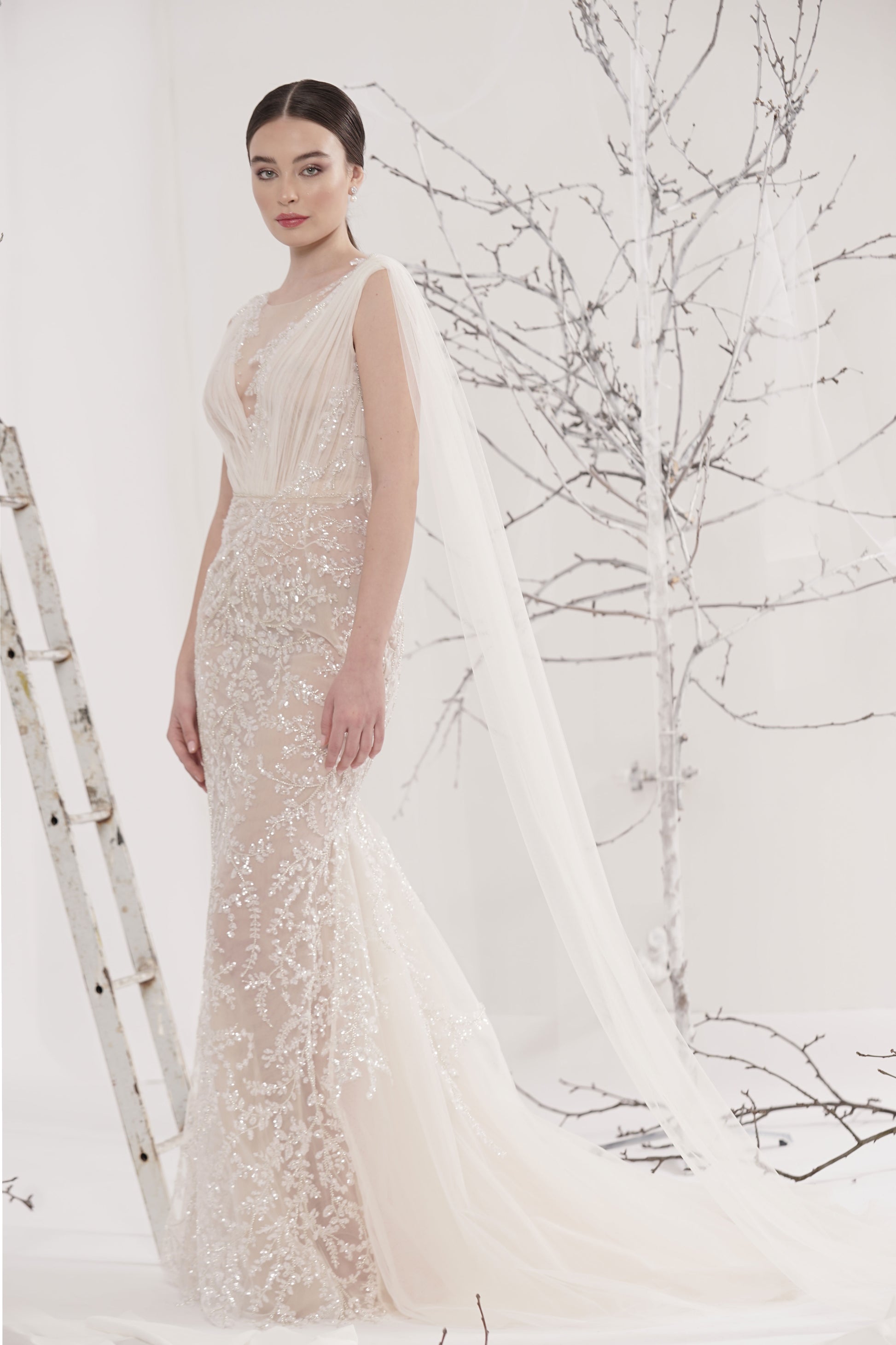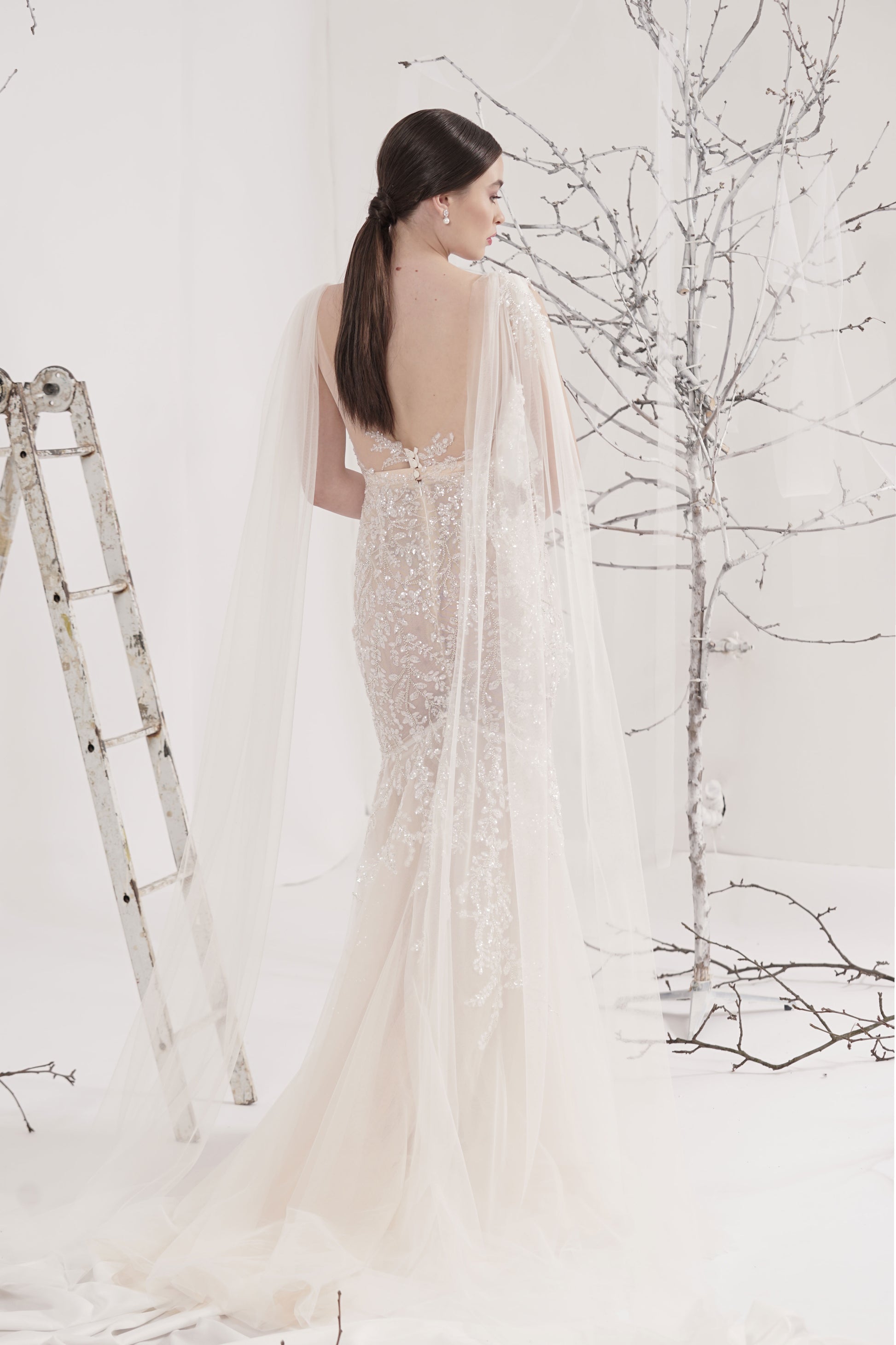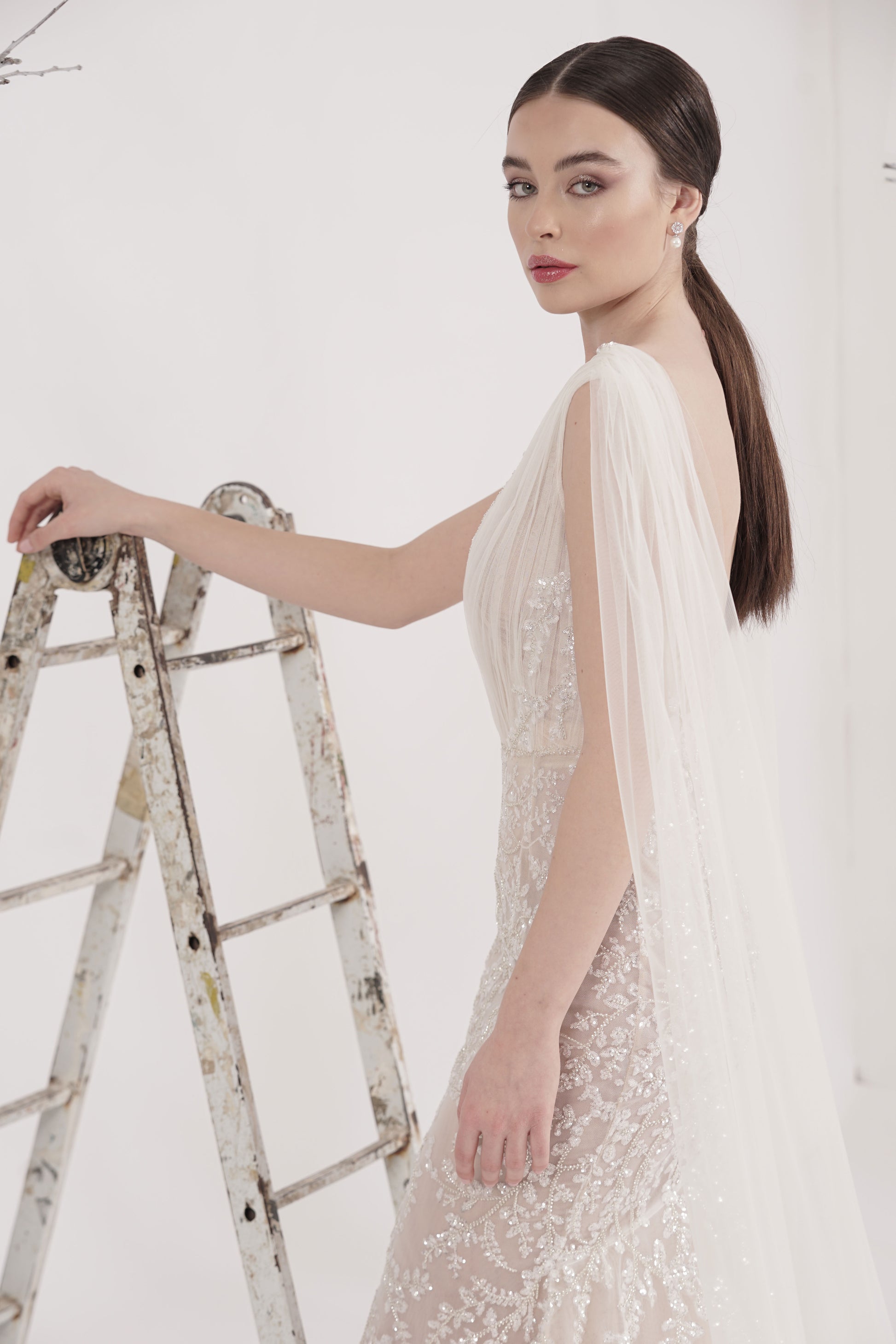 Rochie de mireasă custom made, realizată pe comandă în atelierul Natalia Vasiliev. Pentru programarea unei probe, folosește butonul „Programează o probă”.