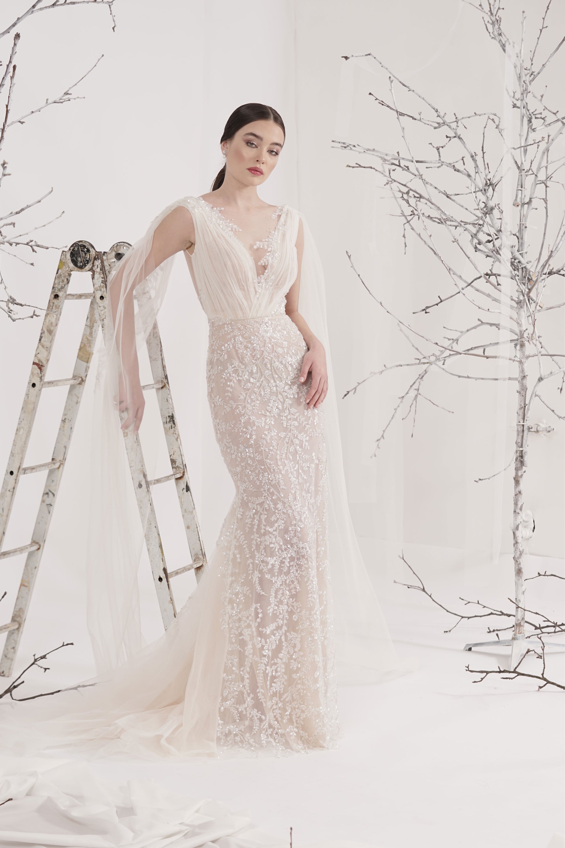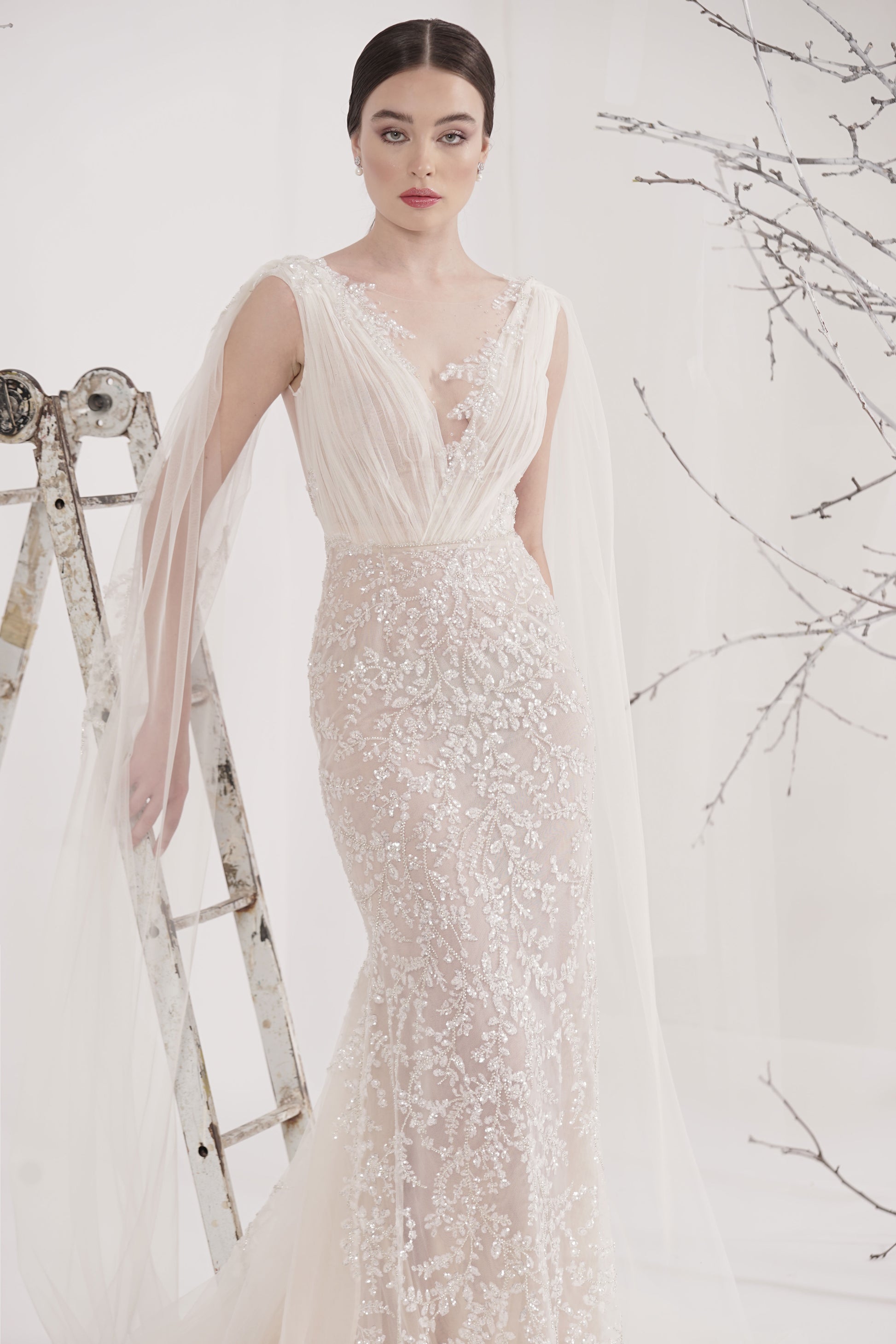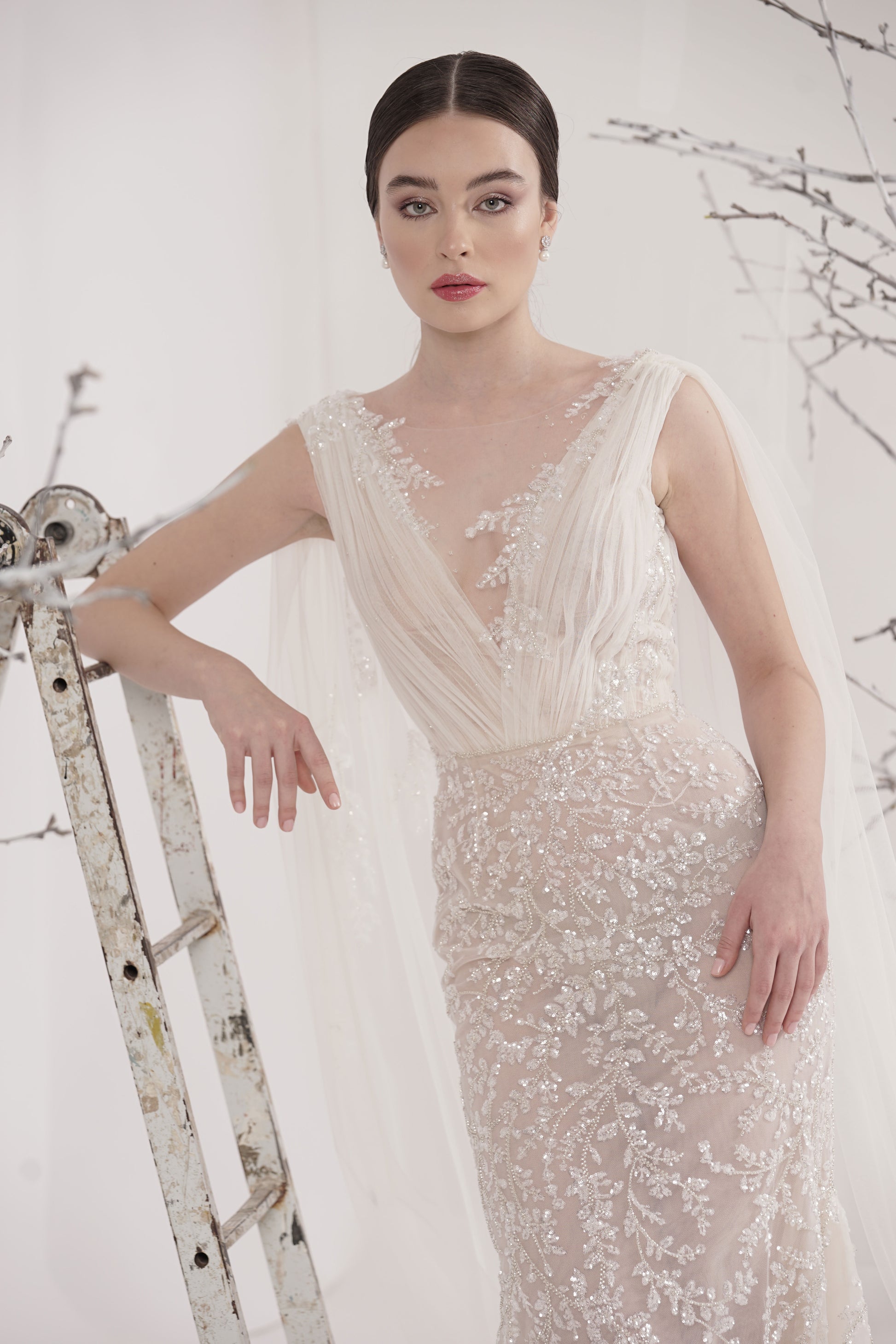 Rochie de mireasă custom made, realizată pe comandă în atelierul Natalia Vasiliev. Pentru programarea unei probe, folosește butonul „Programează o probă”.