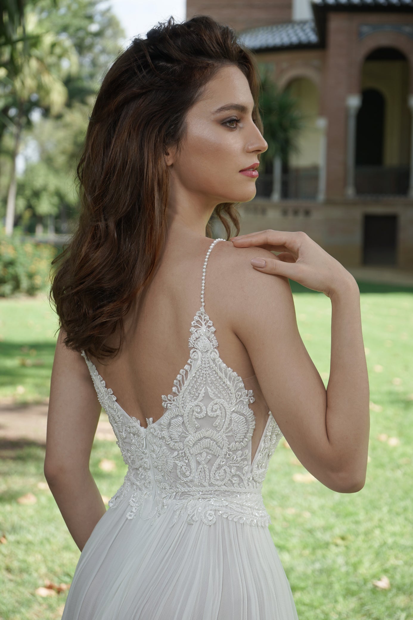 Rochie de mireasă custom made, realizată pe comandă în atelierul Natalia Vasiliev. Pentru programarea unei probe, folosește butonul „Programează o probă”.
