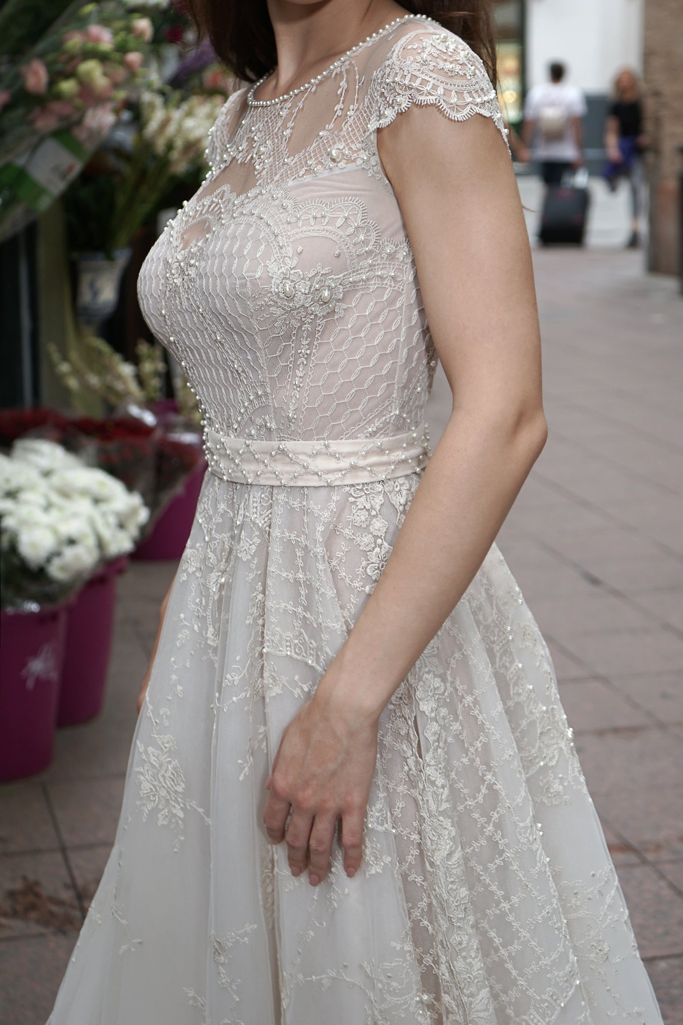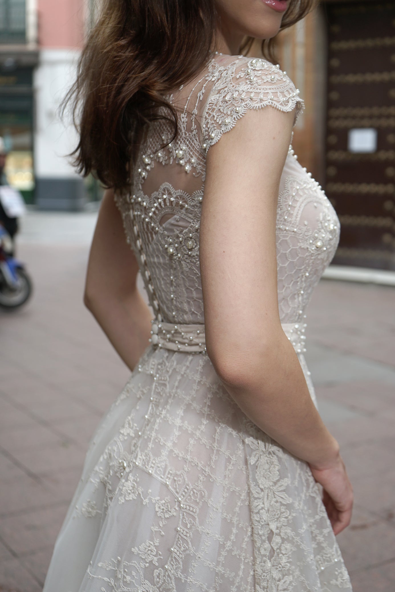 Rochie de mireasă custom made, realizată pe comandă în atelierul Natalia Vasiliev. Pentru programarea unei probe, folosește butonul „Programează o probă”.