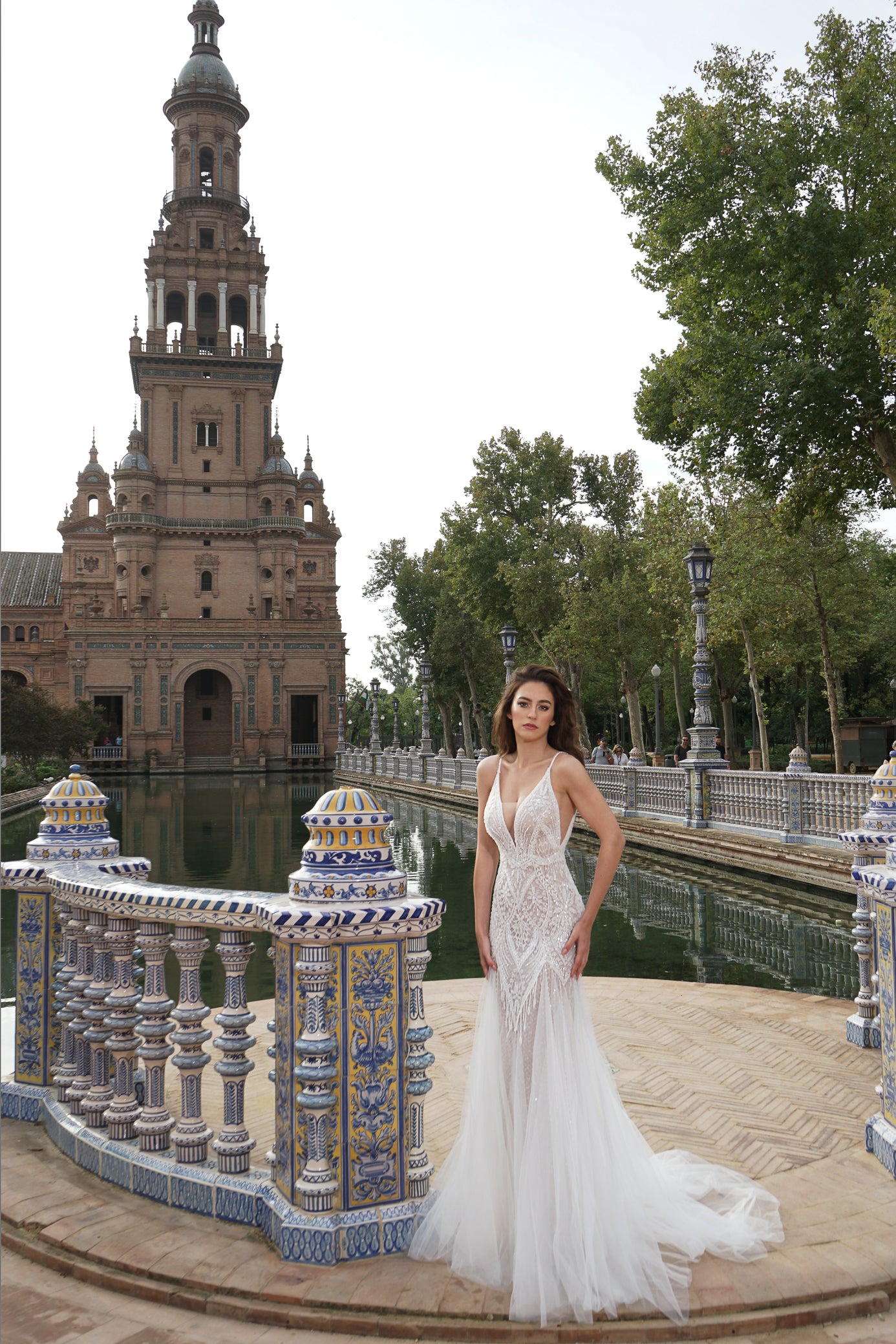 Rochie de mireasă custom made, realizată pe comandă în atelierul Natalia Vasiliev. Pentru programarea unei probe, folosește butonul „Programează o probă”.